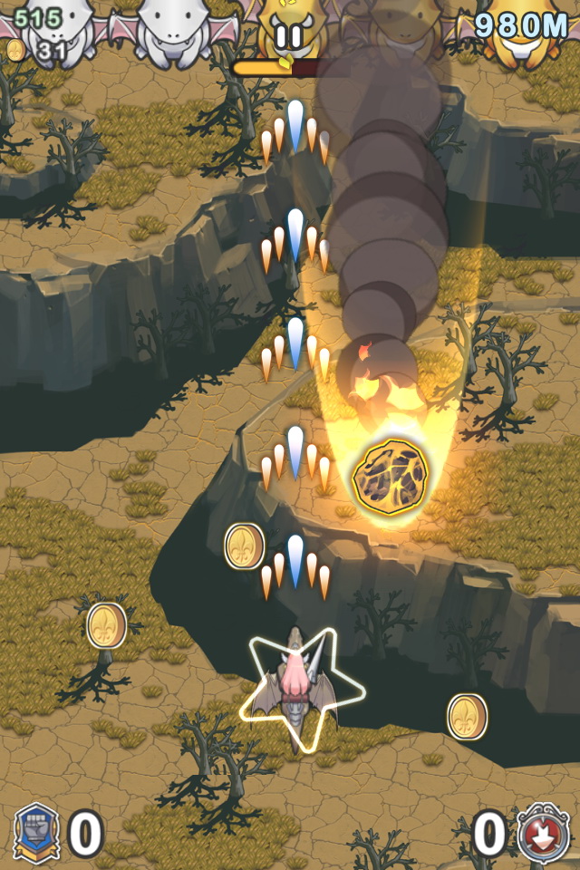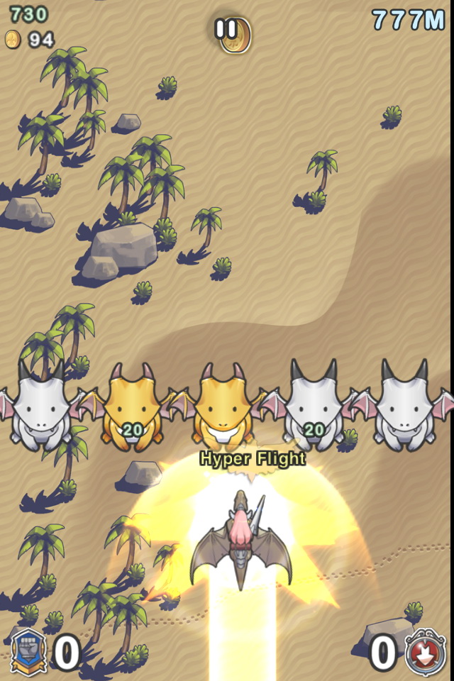 每次擊殺飛龍時,將有機會獲得金幣或寶石,還有短時間無敵衝刺或是雙倍火力加成等等特殊道具,在短時間大幅提升玩家能力。金幣、寶石則可在結算積分後在商店內消耗升級基礎光彈的威力,或是購買其他像是開場衝鋒、範圍爆彈、聚能雷射、原地重生等等強力道具。
