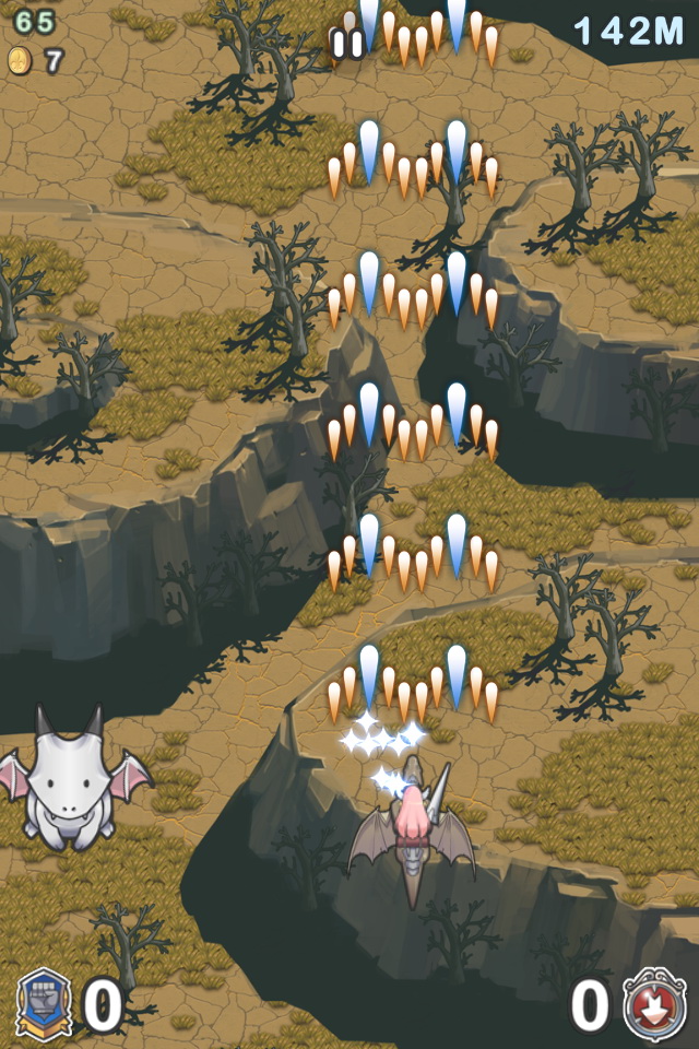 各色飛龍會混雜在龍群隊伍中,玩家要仔細尋找最弱的敵人作為突破口,使遊戲玩法架構相對直觀,有些類似一般跑酷遊戲閃避主要陷阱的概念。隨著遊戲進度,龍群之間出現的間隔也將越來越短而不斷增高遊戲的挑戰性。除了一般龍群之外,偶爾畫面上也會有突發的隕石,要依照事先預測的路徑快速閃避。