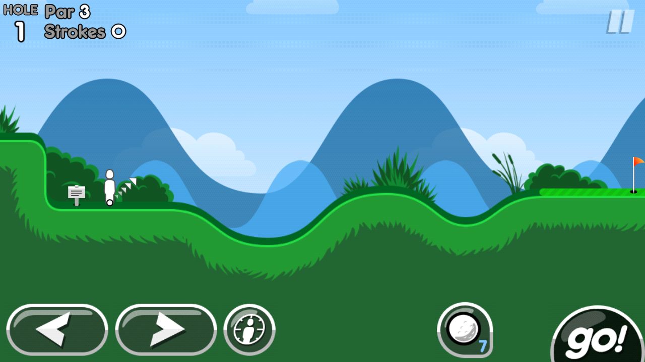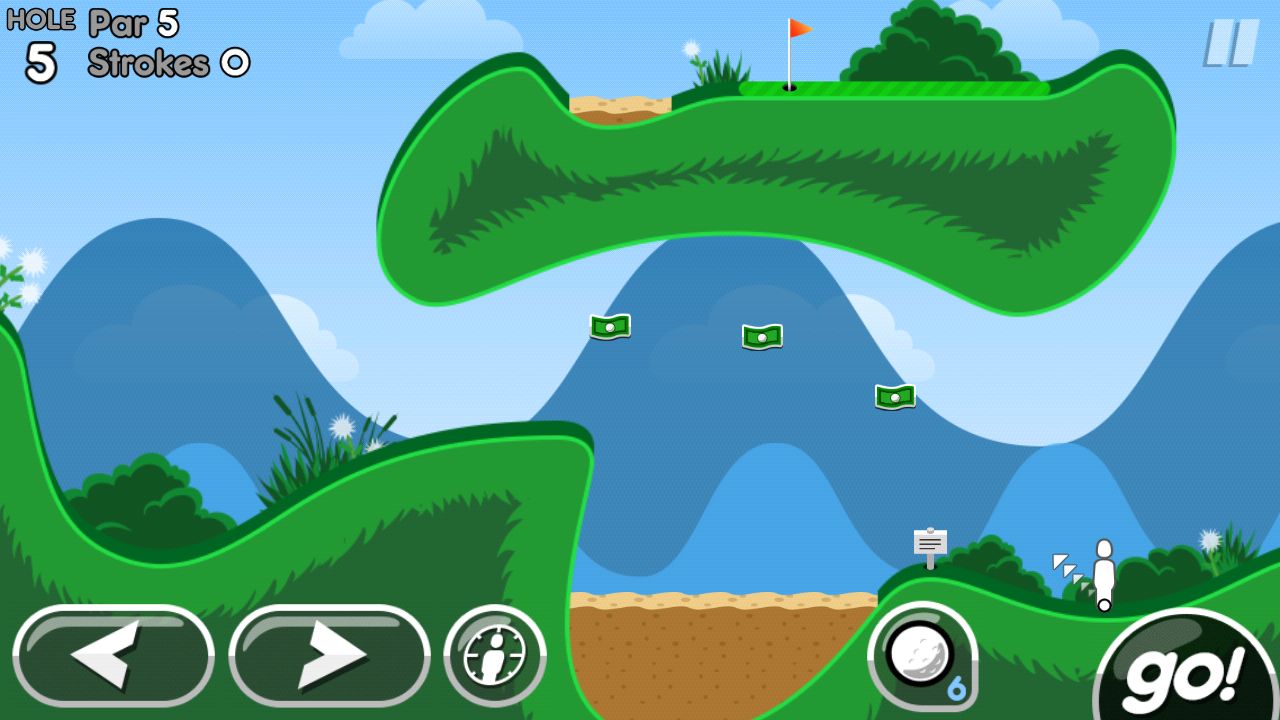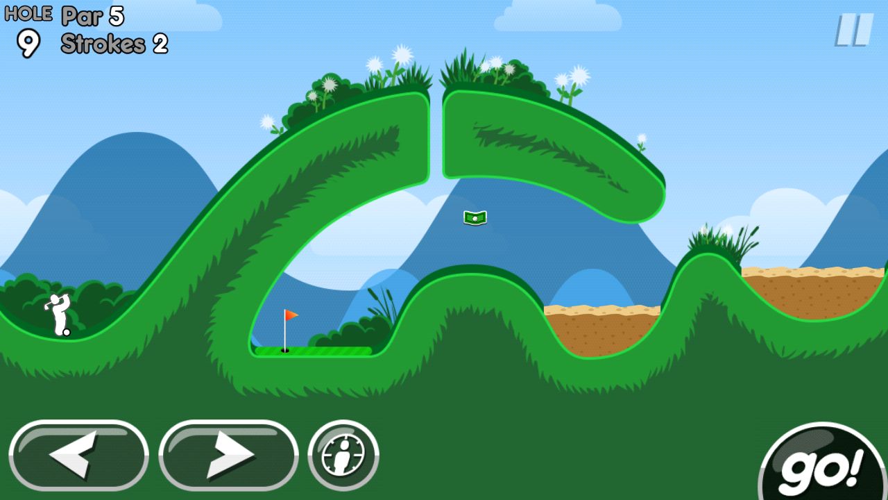 決定好後按下右下角的「GO」鈕後,按鈕上方便會出現力量的計量表,再按下一次「GO」,火柴人便會用相應的力道把球打出去。值得注意的是,當球上到果嶺之後,火柴人會改用推桿,擊球的力道會變得不太一樣。