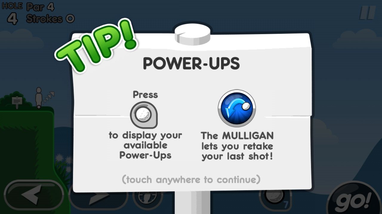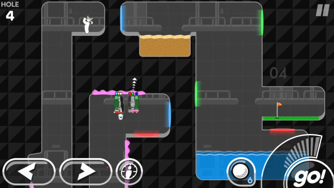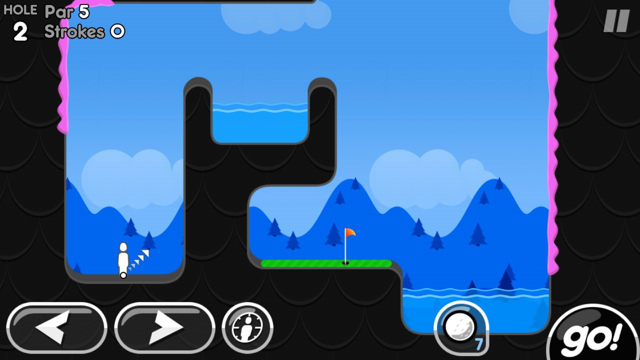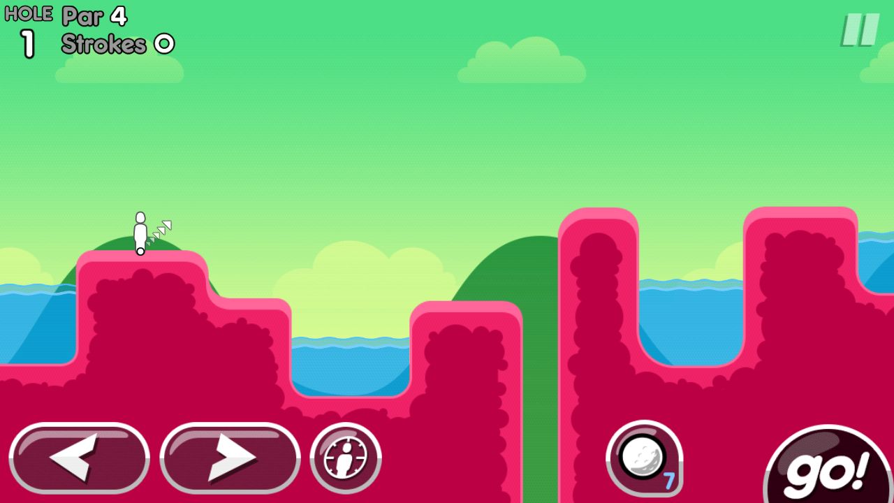 決定好後按下右下角的「GO」鈕後,按鈕上方便會出現力量的計量表,再按下一次「GO」,火柴人便會用相應的力道把球打出去。值得注意的是,當球上到果嶺之後,火柴人會改用推桿,擊球的力道會變得不太一樣。