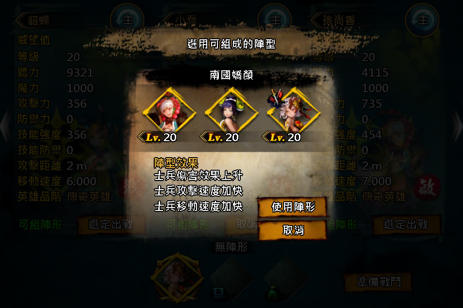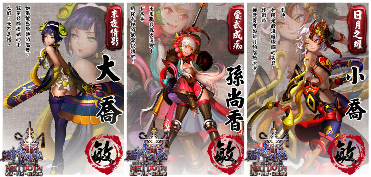 「萌娘無雙」三美人:末夜倩影「大喬」、日月之耀「小喬」和愛武成痴的「孫尚香」組成的全新陣形「南國嬌顏」。