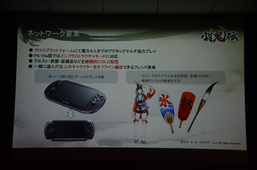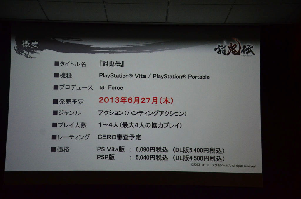 TECMO KOEI Games 在 2013 年 3 月 30 日於東京舉辦《討鬼傳》(PlayStation Vita/PSP)的活動「《討鬼傳》× Play.Community 內部體驗會」。在本作中玩家將扮演隸屬於名為「武士」的組織中的新手武士,與眾多鬼怪進行戰鬥。