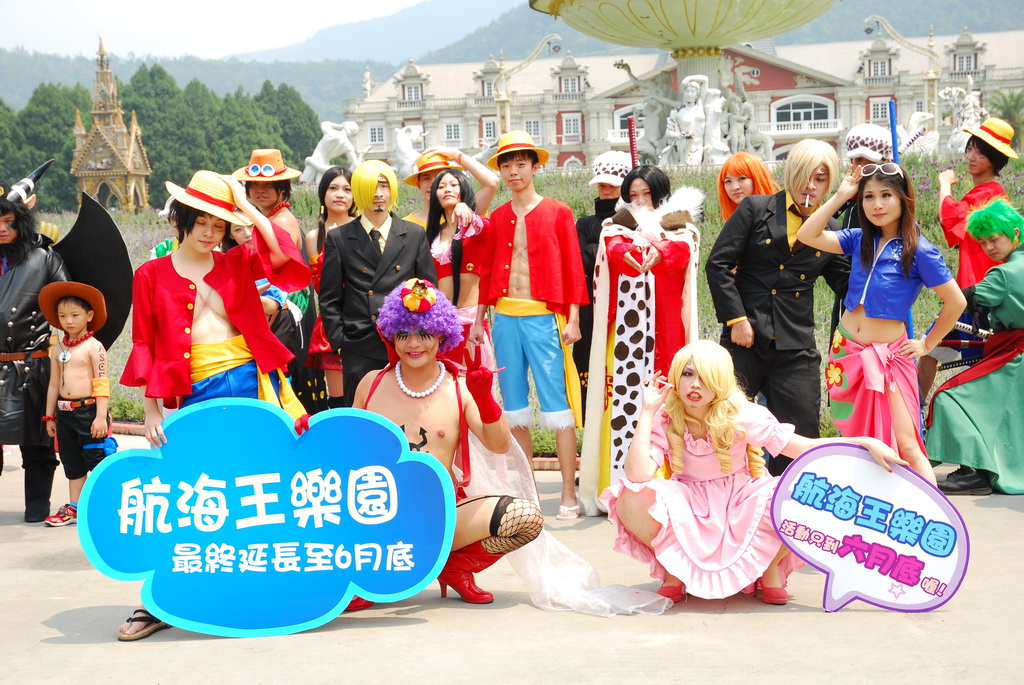 配合九族花季浪漫二部曲「紫戀薰衣草」即將活動進入尾聲,並宣告航海王樂園六月底結束,來自全台南北各地數十位航海王超級粉絲數裝扮成劇中腳色,齊聚在九族文化村的歐洲花園,與場中的草帽海賊團公仔成員共賞歐洲花園的薰衣草,神似而熱鬧的角色扮演cosplay活動,吸引了週末眾多遊客的目光。