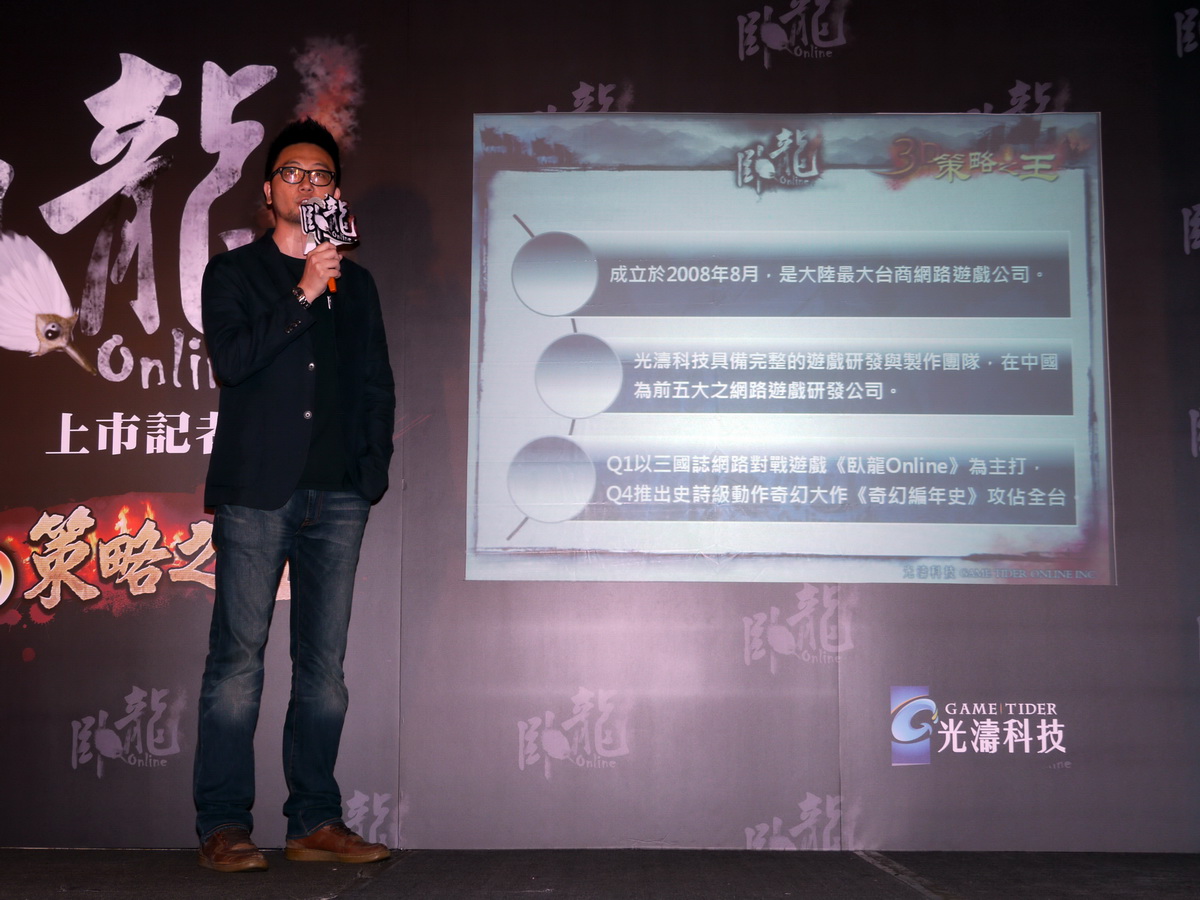 光濤科技旗下新作《臥龍 Online》將於 4 月 9 日在台啟動不刪檔封測。遊戲強調以鬥智為出發點,結合角色扮演與策略樂趣,玩家可以在遊戲中體驗互動式歷程,參與大型戰爭副本,只要善用伏羲兵書、即使身處逆境也有機會逆轉勝利。光濤科技總裁羅春暉宣布,將在台灣建立大型研發中心,希望藉由年輕人的創意與藝術才能,與台灣共同發展。