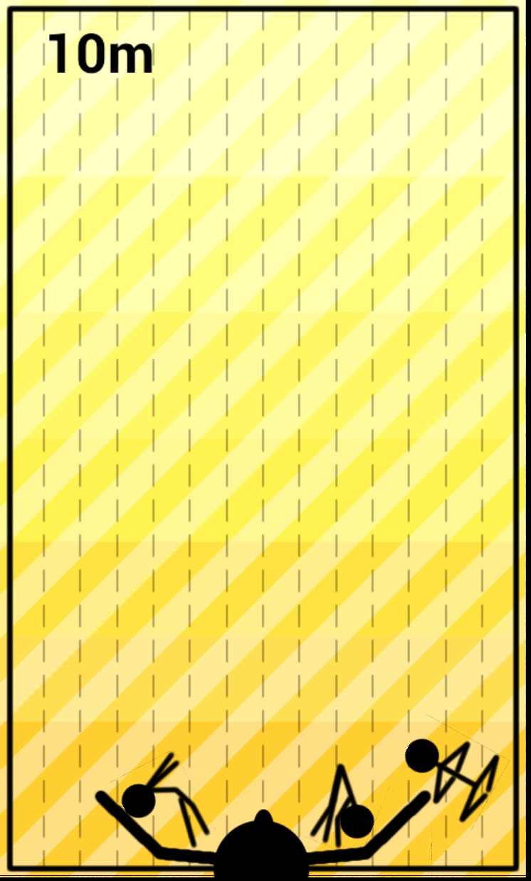 只要有一個瑜珈人掉落在台座外就隨即宣告遊戲結束,而轉往確認分數的畫面。因此仔細觀察瑜珈人的形狀,不讓他向外傾斜而從範圍內滾落出去就是攻略本作的關鍵!