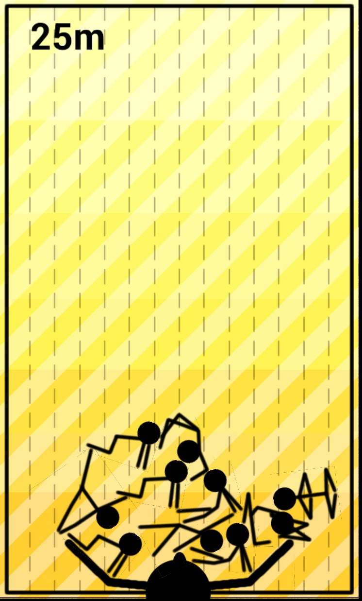 除了範圍限制外,遊戲中有些時候會出現一大堆瑜珈人的手腳勾在一起,而卡在很奇怪的地方.....瑜珈人的動作是非常不穩定的。除了這些會讓人感到討厭的要素外,由於偶爾會出現預料外的有趣情況,因此在思考如何堆疊的同時,不知不覺人就深陷在遊戲中了。另外,由於瑜珈人的動作非常多樣化,因此也能獲得跟一般堆積遊戲不同的遊戲體驗。