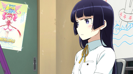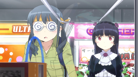 第一話中,開頭稍微描述了一點京介與桐乃小時候的關係變化,可以看出其實在小的時候,京介與桐乃的關係其實是不錯的,可是因為京介的顧慮,再加上害羞鬧彆扭不肯講實話,結果與同樣愛面子的桐乃關係就變的愈來愈差。而後時間轉到現在,雖然桐乃的確有『傲嬌』中『嬌』的一面,但實在是滿難看出來的…單以這點來說京介實在滿可憐的,雖然大家都知道他過的很幸福。同時,京介那種壓抑的心情也傳達給了觀眾。