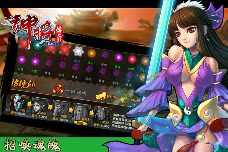 神將傳奇 OL》中共有五位神秘招魂師可以為玩家招魂,五位招魂師的招魂技術等級各不相同,最初階的招魂師隨時都願意為玩家招魂,後面幾位是否願意為玩家效勞就要看玩家的運氣啦!越高級的招魂師越容易召喚出高品質的強力魂魄!但相對的,索價也是逐步高攀的!