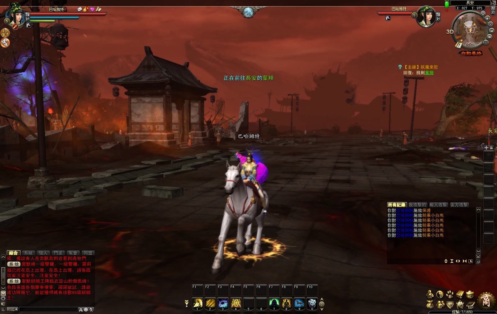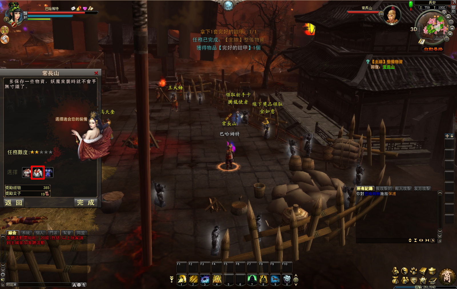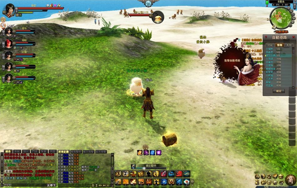 遊戲內鍵「自動巡路」,玩家可點選任務(畫面右方)的綠色字抵達任務指定地點或找到任務回覆 NPC。當玩家完成任務後會獲得任務獎勵,若獎勵為裝備時,系統會以紅框提示玩家適合的裝備。此外,一開始是沒有坐騎的,不過當玩家在使用「自動巡路」且目的地太遠時,系統會顯示預設坐騎。