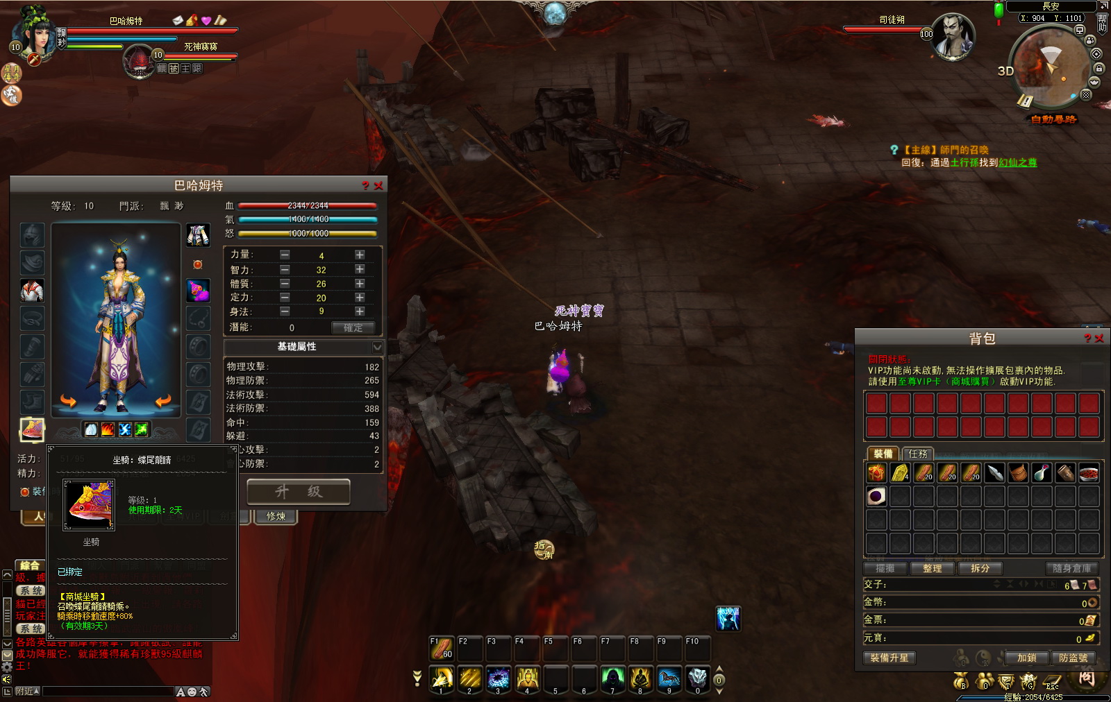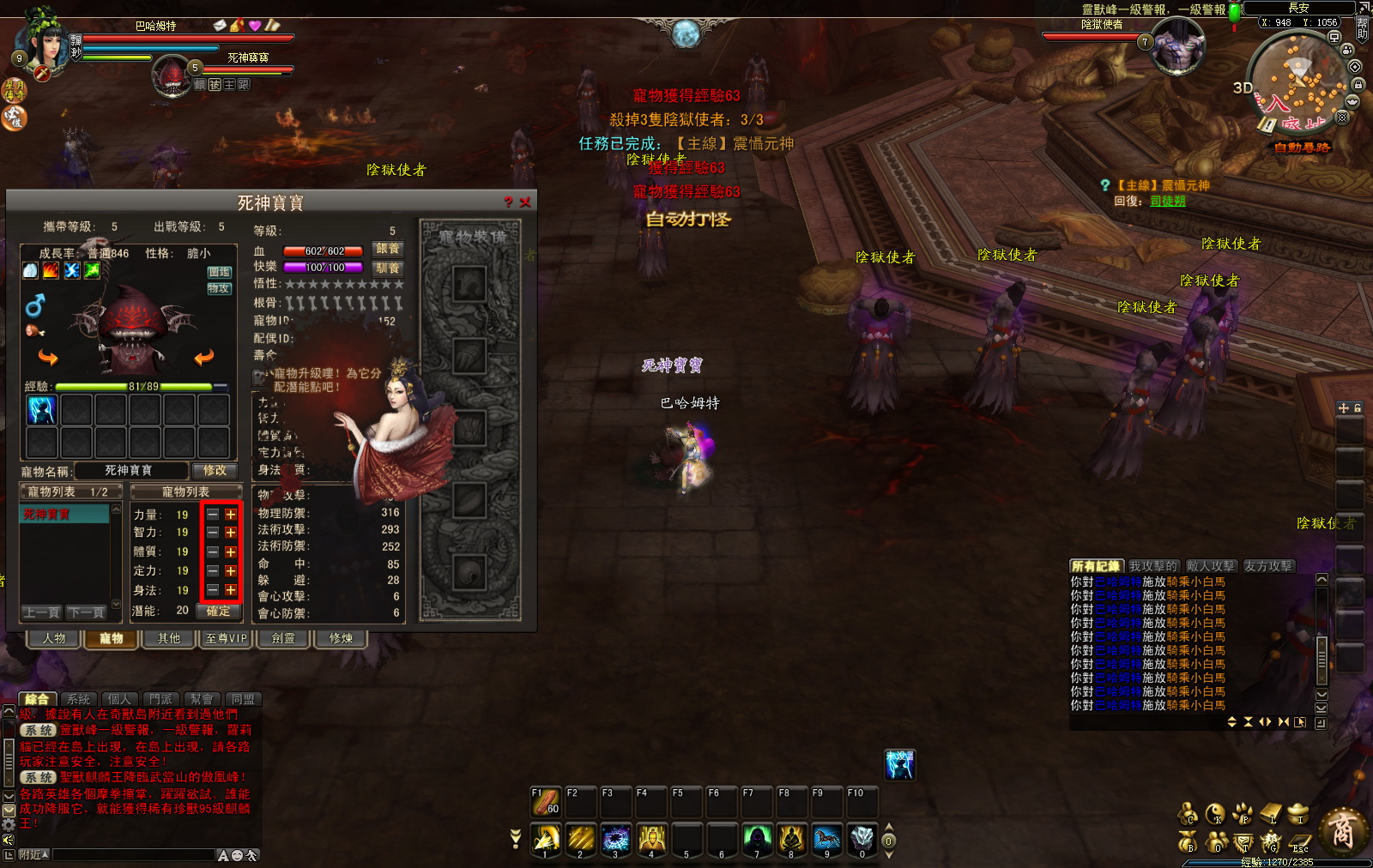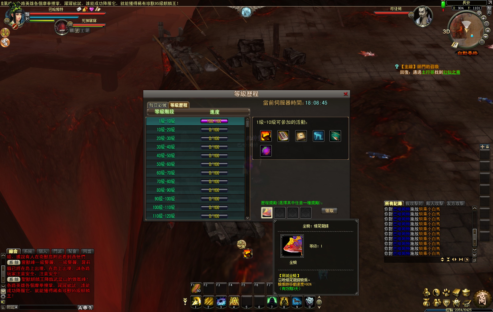 不過,當玩家角色等級達到 10 級時,系統會贈送一支「蝶尾龍睛」送給玩家當作「等級歷程」獎勵;而玩家的第一隻寵物「死神寶寶」也會在 10 級左右獲得。在遊戲的過程中,系統會不定時的跳出「提示視窗」,提醒玩家新系統開放或是已完成事項等。