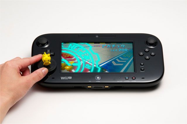 這個玩偶只要放在 Wii U 的遊戲手把上的話,跟玩偶相同的神奇寶貝就會在《神奇寶貝亂戰 U》的世界中登場,有著令人驚訝的設計。