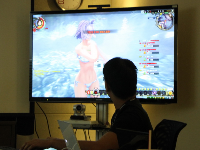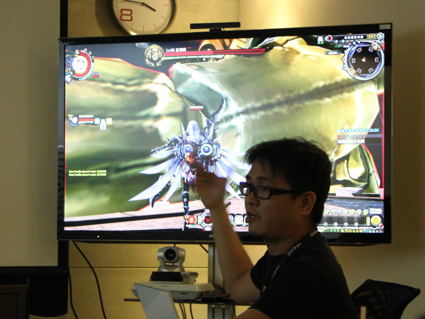 遊戲製作人為現場媒體介紹拜拜系統,此為廟宇的特色神之一