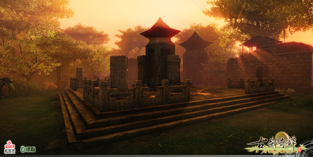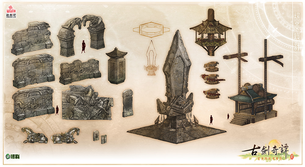 輕霧繚繞的百草谷顯得迷離而幽深,一座哨台在樹木縱橫交錯的枝葉後悄然佇立。在百草谷場景設計圖中,可更清楚瞭解場景特色建築。一座高聳的石碑躍入眼簾,這是百草谷天罡的忠魂碑。歷代天罡安眠之地也正處於這個安寧靜謐、莊嚴肅穆的場景中。