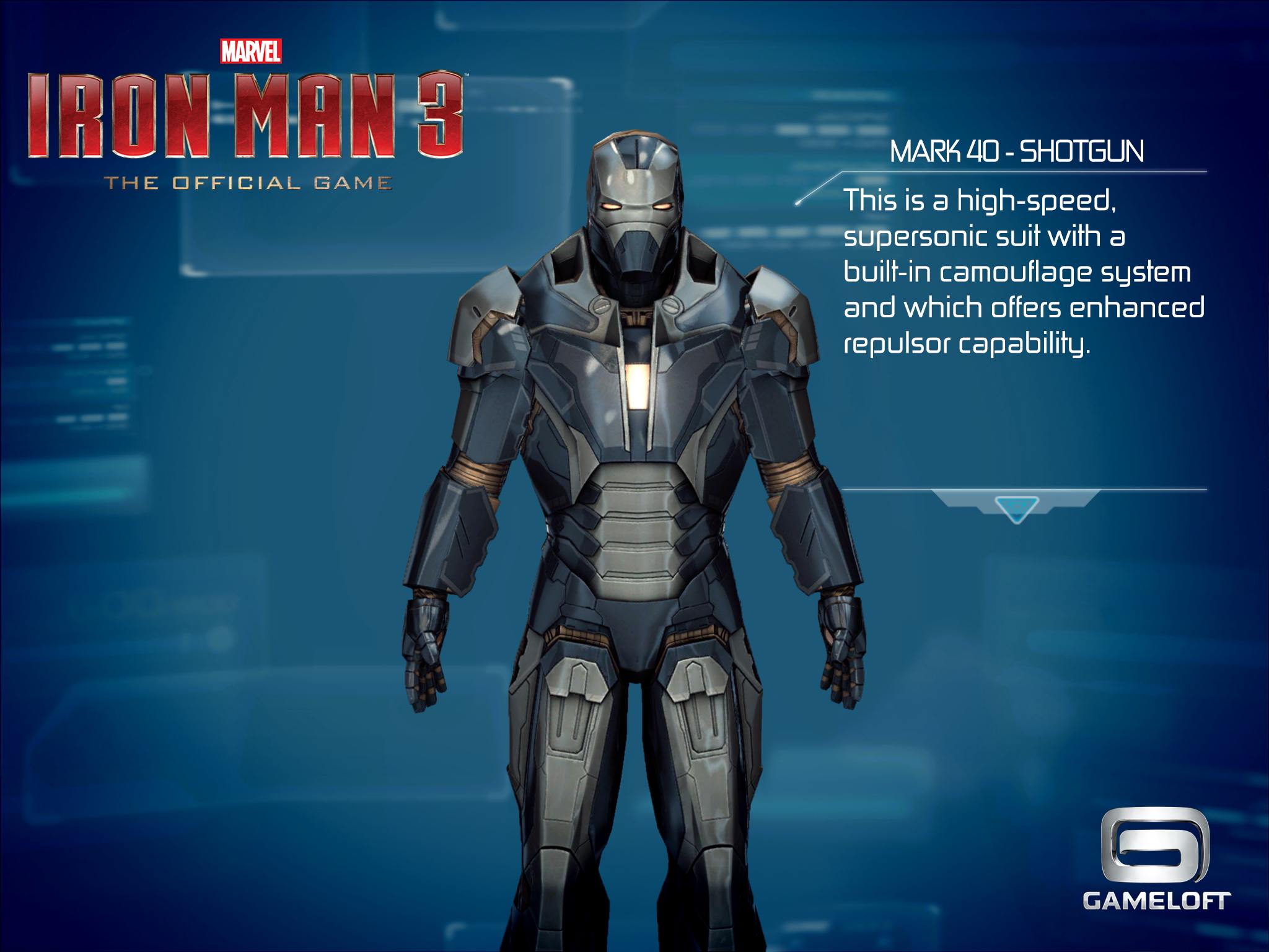 其中名為 MARK 40 - SHOTGUN 的是一款穿戴後可進行高速飛行的超音速裝甲,內置隱身系統,並提供加強版的衝擊光束武器。