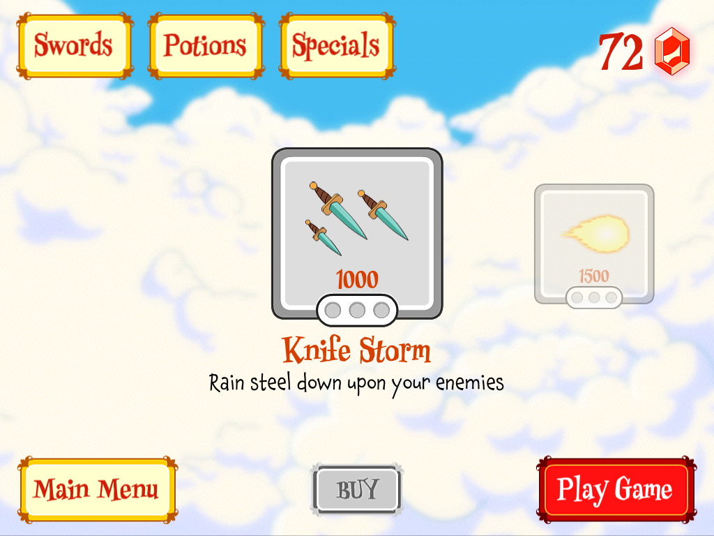 一開始寶妹只能使用最平凡的鐵劍,不過當玩家每次擊斃敵人時都能獲得一定數量的紅水晶,這些水晶可以用以在商店中購買各式各樣的特殊物品,隨機出現在戰場上幫助玩家。