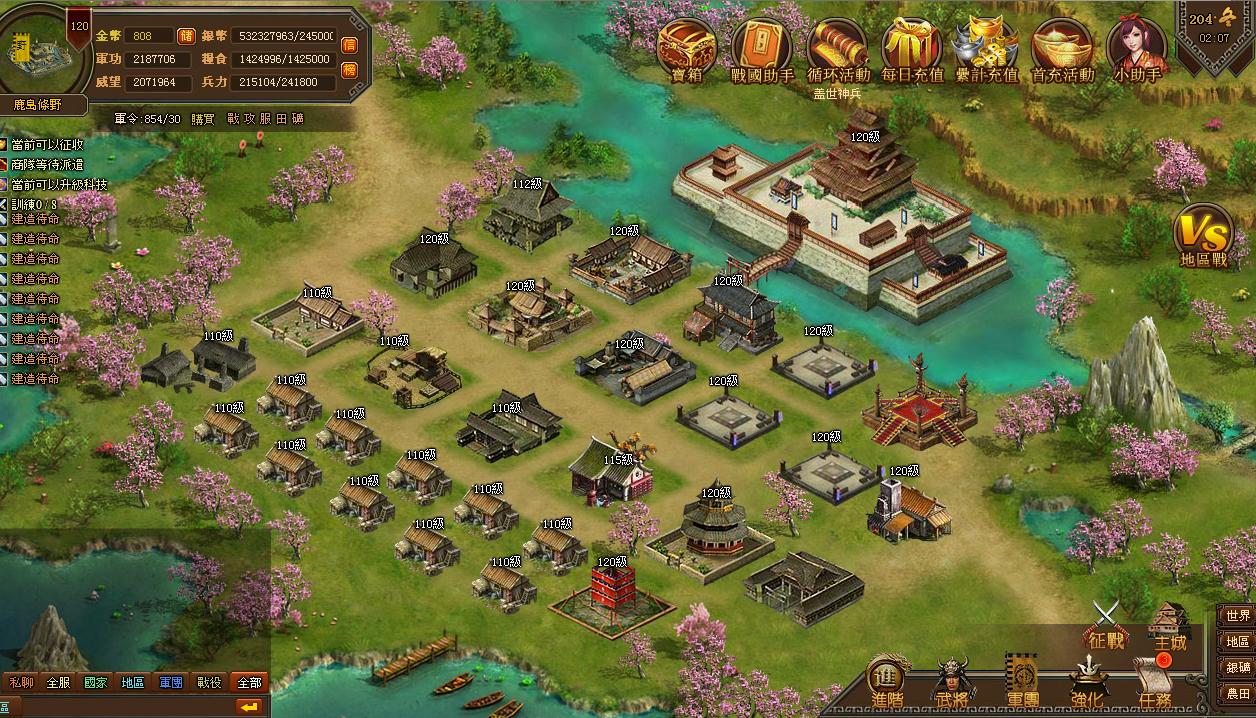 首先要升級府宅,其他建築的等級均不能超過府宅等級;其次,需要升級增強能力或者獲得銀幣的建築,比如:謀略府、商店、練兵場、民房、紡織局;這些建築對中期發展非常有用;當然,具體的需要根據玩家尋找屬於自己的最佳成長路線。