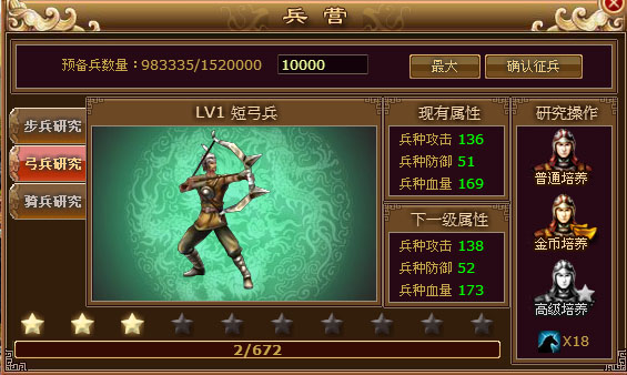 三種兵種互相剋制,步克騎、騎克弓、弓克步,對戰時有頗大影響。玩家可充分發揮兵種特性,或是藉由兵種升級體系,提升攻擊部隊的攻擊力、防禦力、血量,更可能變換造型,成為更高級兵種。