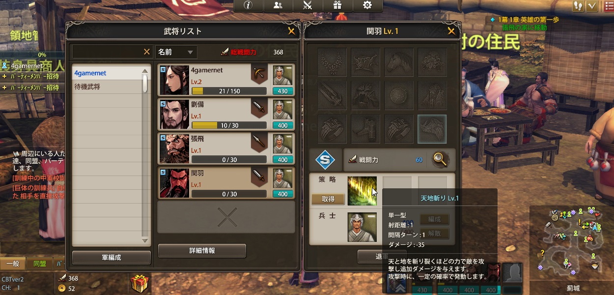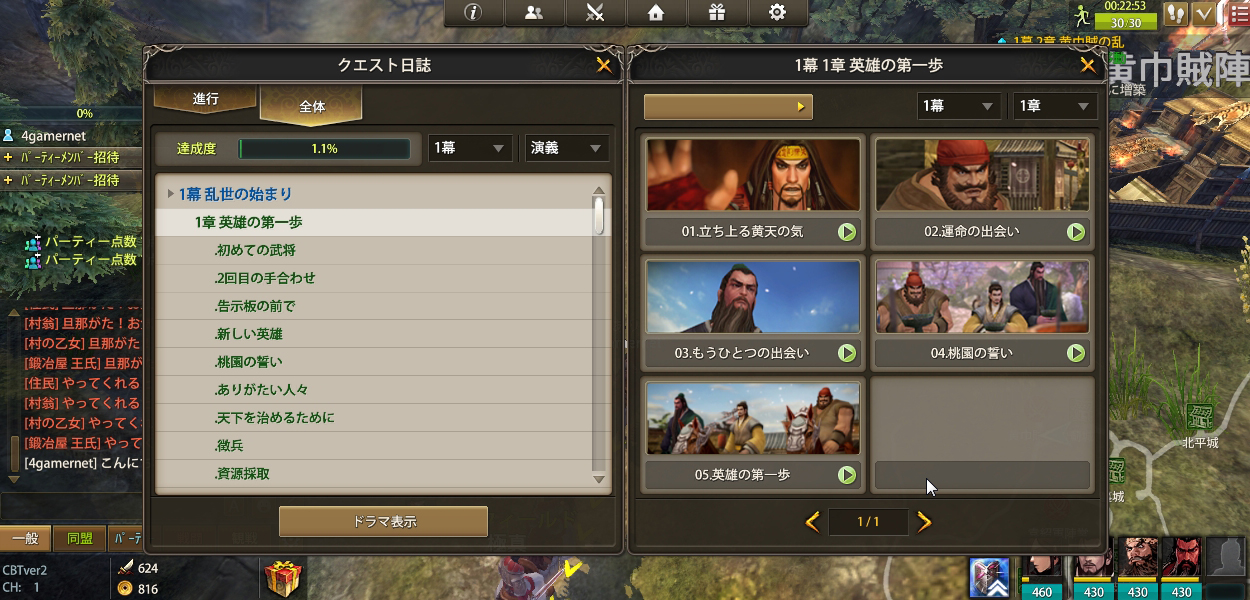在本作中的主要劇情是以「幕・章」架構來構成,會沿著三國演義的發生事件內容來推進。在這次的封閉測試中可玩到「第一章・第十幕」為止。