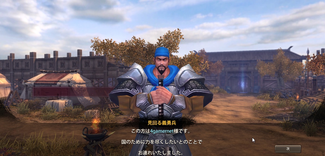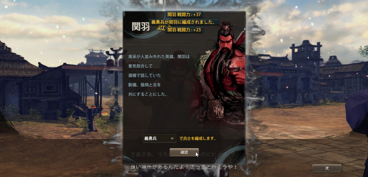 創好人物後玩家會來到中國大陸的“幽州”。當時的幽州是受到以宗教之名而蜂起的“黃巾賊”所干擾到的地區之一,而玩家就是挺身而出的君主。這邊並且也會遇到幽州的同郷「劉備,關羽,張飛」這些武將們,玩家要將他們收為部下,以他們的視點來進行三國演義的故事。
