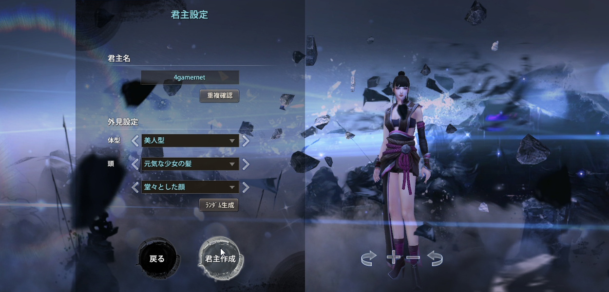 在本作中玩家是扮演處於小說「三國演義」世界裡的虛構君主。連上遊戲之後玩家要先進行的就是創造君主角色了。這邊基本上就跟一般的 MMORPG 一樣,玩家可以決定好名字之後,再選擇喜歡的體型,髮型,臉部類型,算是玩家熟悉的系統。