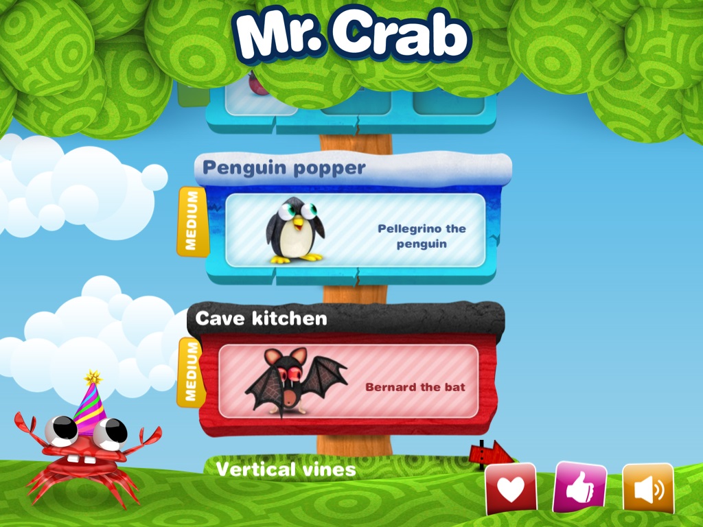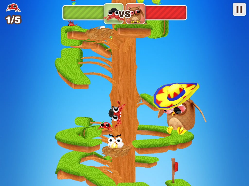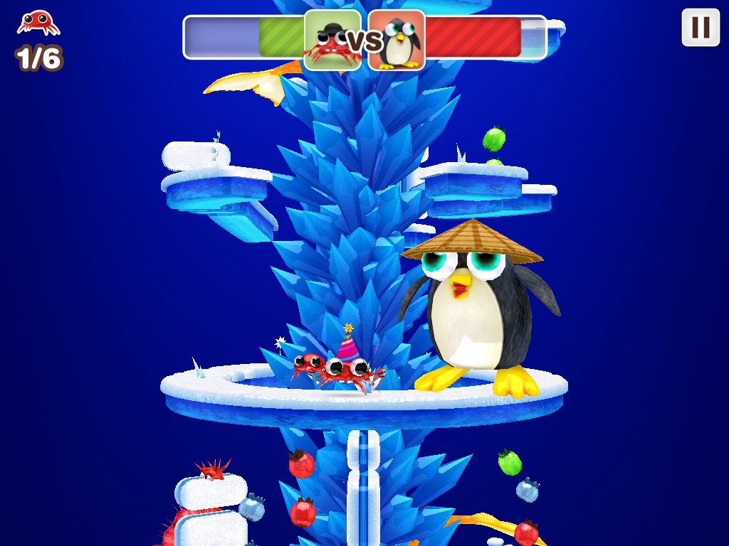 此外,每當完成一定程度的關卡後還能解鎖隱藏的特色魔王關,看著巨型企鵝、貓頭鷹遊走在身邊而要伺機找到反擊的機會,是讓遊戲更顯得刺激有趣。每次擊敗守關 BOSS 還可以獲得像是派對帽、斗笠等新的頭飾讓螃蟹先生更換。