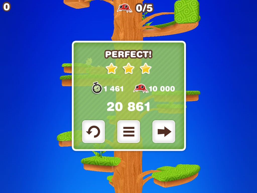 基本上遊戲要到達終點並不困難,不過要關卡達成三星的滿分評價就必須注意過關的時間、找到所有的小螃蟹,並盡可能的提高關卡積分。