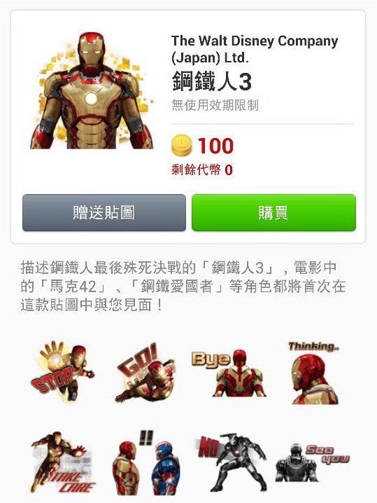 《鋼鐵人 3》繼於日前推出手機同名遊戲之後,今日首次在手機通訊軟體《Line》上架了專屬的聊天貼圖。除此之外,由若櫬千夏設計的卡通角色《KUMATAN》以及《水豚君》也都推出了全新的聊天貼圖。