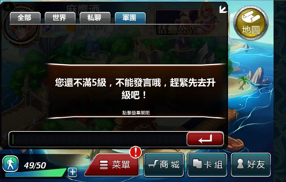 玩遊戲時是否最討厭在聊天框看到一些冒充玩家發出的無聊信息?現在更新版本添加了5級以下限制發言的系統,給您帶來一個文明安全乾淨的聊天環境。