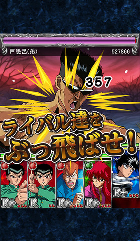 幽遊白書~ 魔界統一最強戰鬥~(幽遊白書~ 魔界統一最強バトル~)》。原先是限定於 日本 GREE 平台中下載,現在則重製移植到 App Store。
