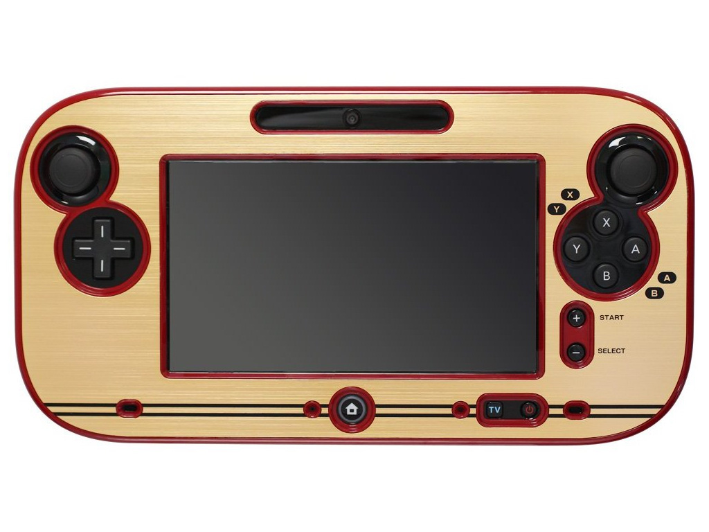 這款裝飾保護面板使用輕量鋁板製作,具備防汙防刮效果,配色採用老玩家熟悉的任天堂紅白機控制器風格紅金配色,裝備後就能讓 Wii U 遊戲平板變化為洋溢著 8 位元復古風格的模樣。