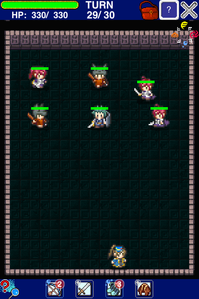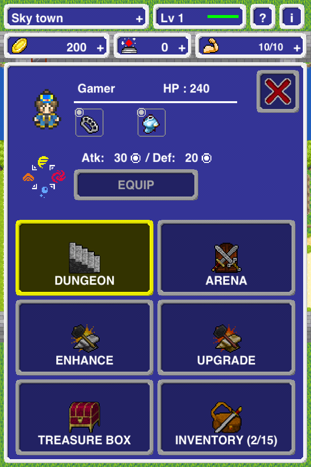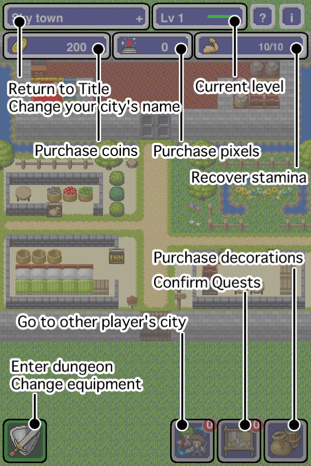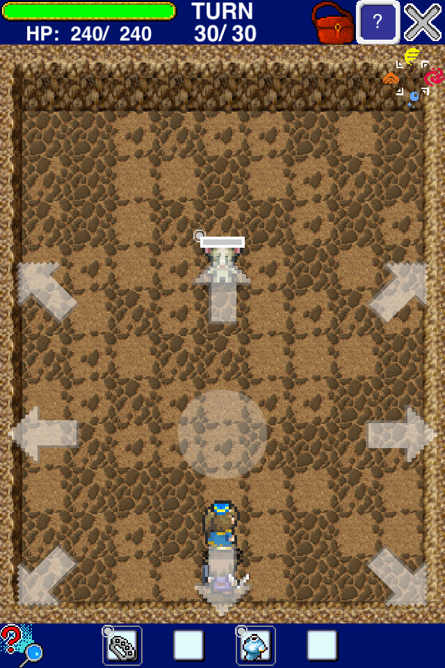實際戰鬥方面是回合制,操作則簡化為一指觸控,進入怪物巢穴的地圖場景時,玩家要以角色為中心點擊前後左右與四方斜角八個方位控制人物的移動,一邊閃開路上陷阱一面靠近敵人,一但接觸則會自動發動攻擊,只要殲滅所有怪物就能完成關卡回到小鎮。