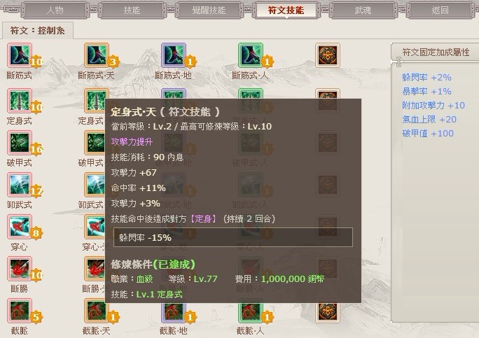 《武林英雄》技能的重大改革!即日起,官方將開啟全新技能─『符文』,此為《武林英雄》職業技能的首次突破。玩家只需將「符文」技能啟動後,隨著等級的不斷提高,符文技能的屬性也將隨之不斷增加,全新的技能效果,讓戰鬥充滿樂趣,多變的戰術應對,使得玩家可在逆境中求生。玩家也可使用遊戲中所累積的「榮譽值」,獲得開啟「符文」技能的資格,超低門檻,讓所有玩家均可參與其中。