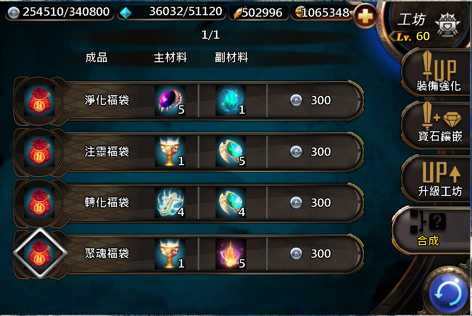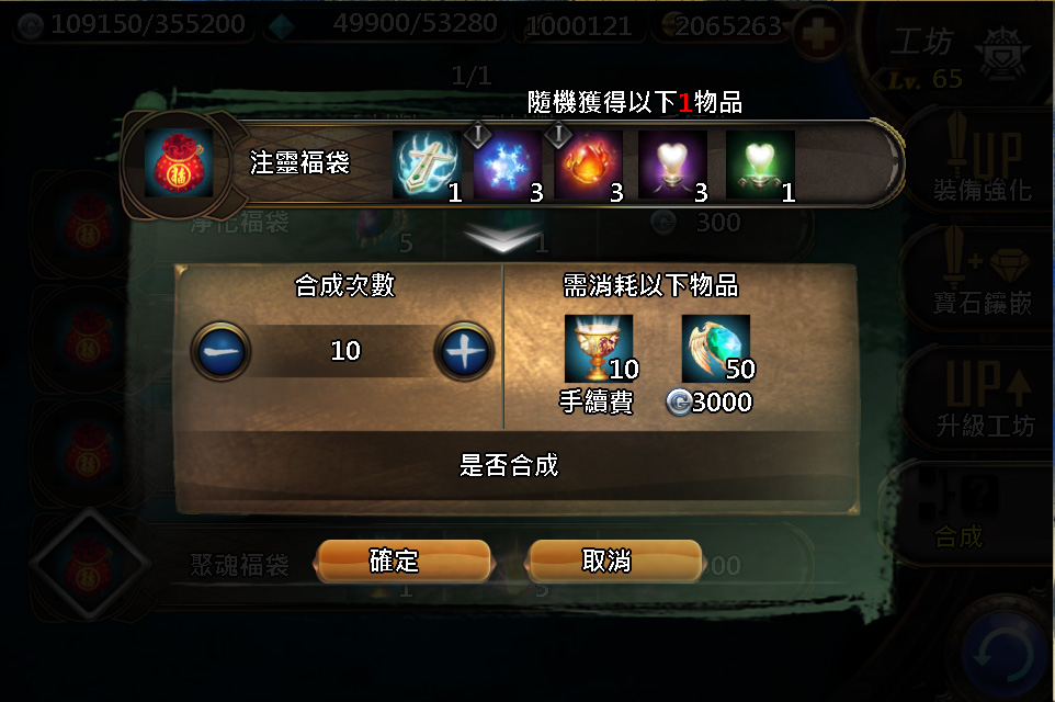 『合成系統』的出現,讓寶石從單一屬性變成多屬性;征戰掉落道具由完成任務至現在可合成為更有用的裝備甚至英雄!『合成系統』的出現改變了遊戲英雄與寶石的獲得的模式和使用。進入『合成系統』後,領主們會看到有四大選項,分別為『熱門合成』、『初級寶石合成』、『中級寶石合成』及『高級寶石合成』。除寶石合成外,其餘的合成都歸屬於『熱門合成』,此項內含各種福袋,最高等級的寶物有「裁決之刃」(傳奇)與「黃蓋」(傳奇),特別一提,「裁決之刃」是目前升級成長幅度最高的武器,也是目前最強的武器。大家趕快去收集合成素材,夢幻寶物不是夢!
