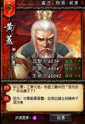 審時度勢,獻技「火燒赤壁」,忍辱負重,詐降上演「苦肉計」!智勇雙全的黃蓋也在此次更新中登場,其著名武將技能「苦肉」除了可以攻擊敵方單體外,還能通過自殘讓主將擁有不屈效果。