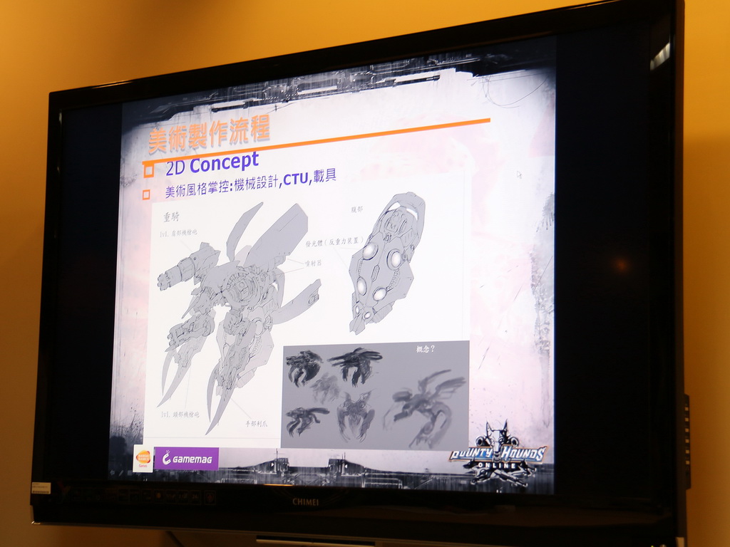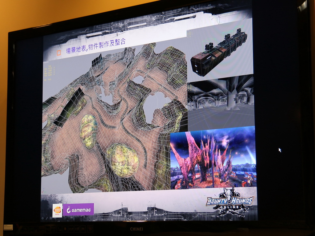 首先由 楊景棠進行美術流程介紹,他指出:「 《星戰傭兵 Online 》是款以科幻為題材的遊戲,因此設計上使用了大量的機械;而怪物、首領的部分我們則強調其與環境之間的關係來作設計。 」