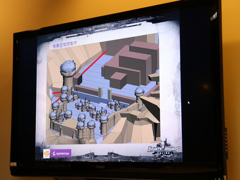在概念都確定之後,會接著針對每一項細節進行調整、設計。另外,在場景的部分有一項很重要的流程稱為「豆腐關」,這個動作可以讓 2D 與 3D 企劃之間的概念更接近,在高低差、實際距離等都可以在此表現出來,讓 3D 製作人員可以很清楚的理解該 2D 場景所要呈現出來的概念。