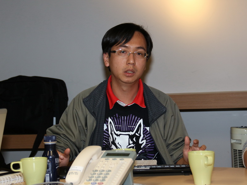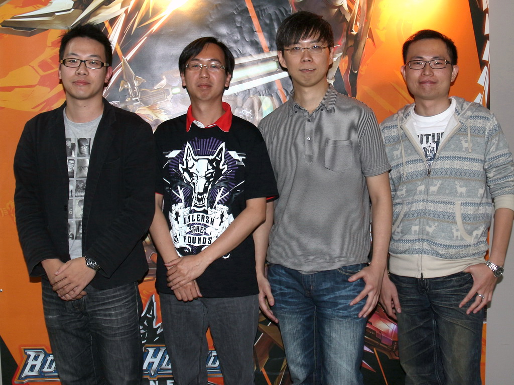 左起為企劃組長方聲豪 、技術總監黃仁賢、遊戲製作人林恩申以及 美術組長楊景棠