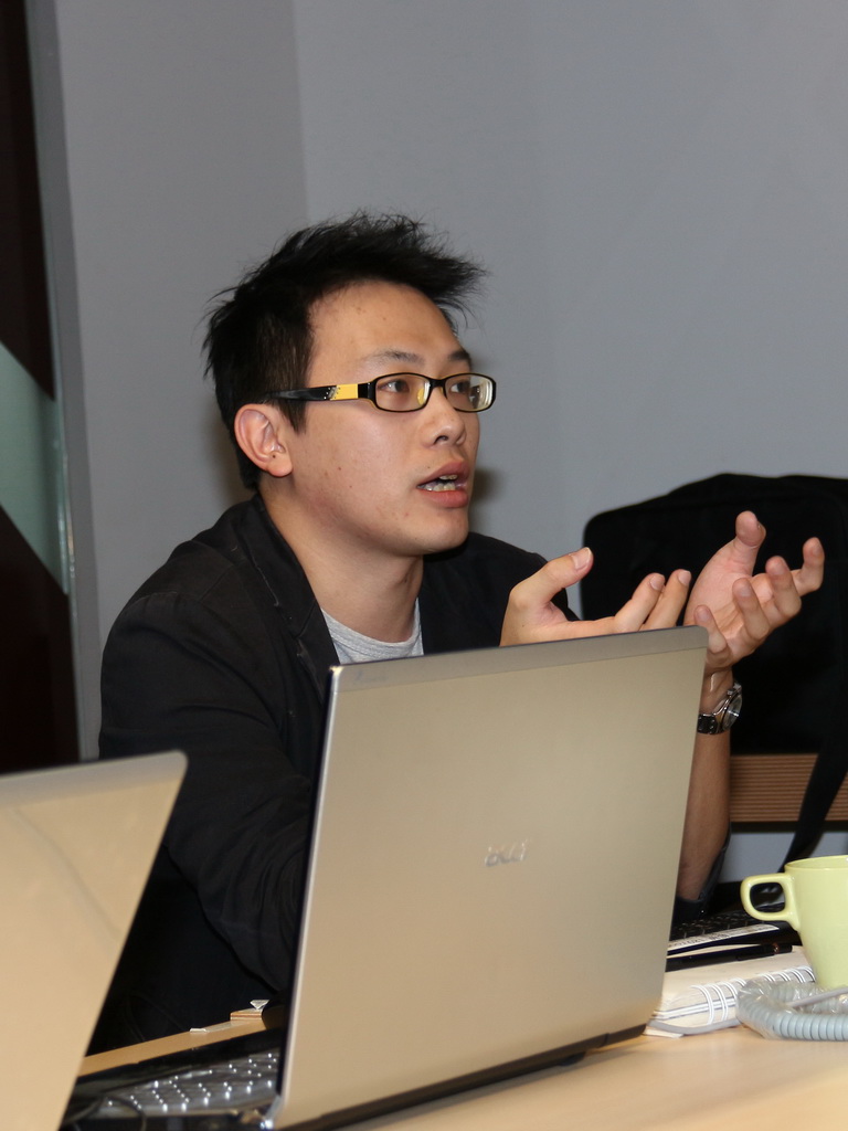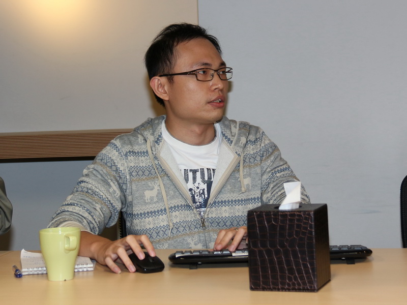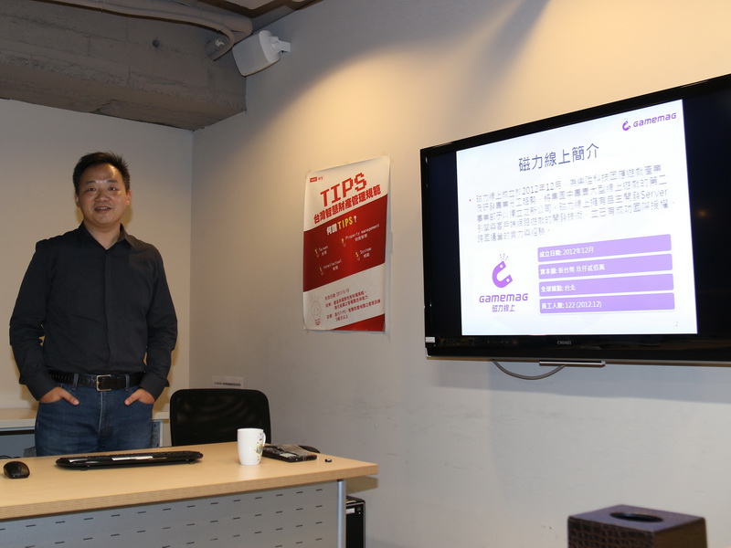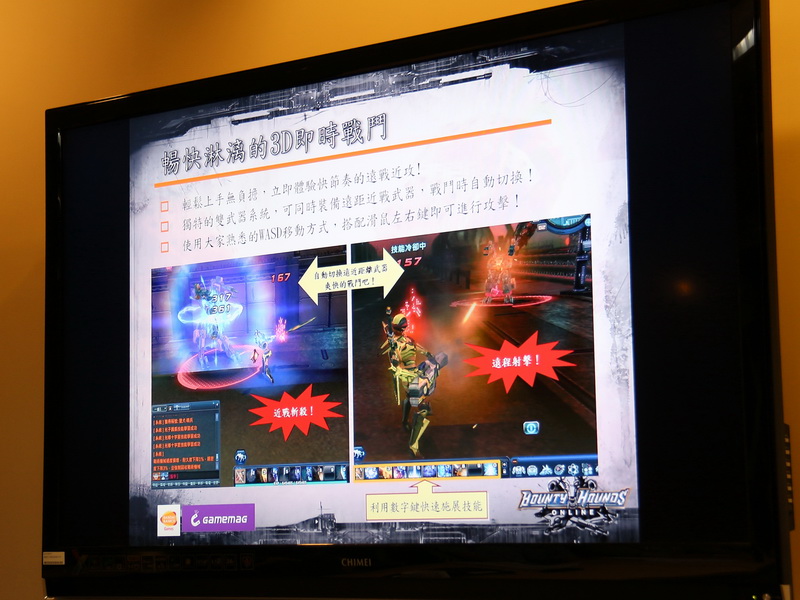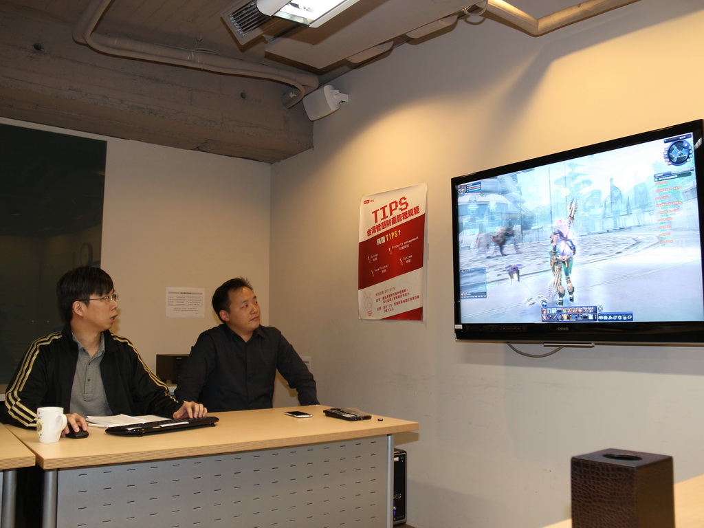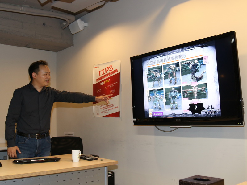遊戲製作人林恩申實際操作遊戲為現場媒體介紹遊戲特色