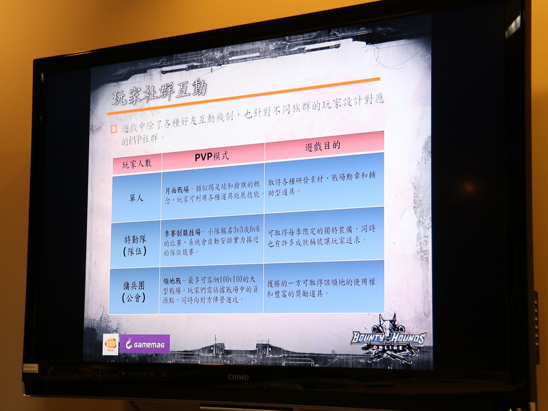 遊戲中除了各種好友互動機制,同時針對不同族群的玩家設計對應的 PVP 社群,包含單人、特勤隊以及傭兵團。在單人月面戰場中,玩家可進行搶旗對戰,奪取素材、勳章等;特勤隊屬於隊伍戰,目前有 3 對 3 與 6 對 6 的設計,系統會自動安排實力接近的隊伍進行對戰;而傭兵團則是公會戰,可容納 100 人對 100 人的大型戰場,獲勝的一方可獲得領地使用權。