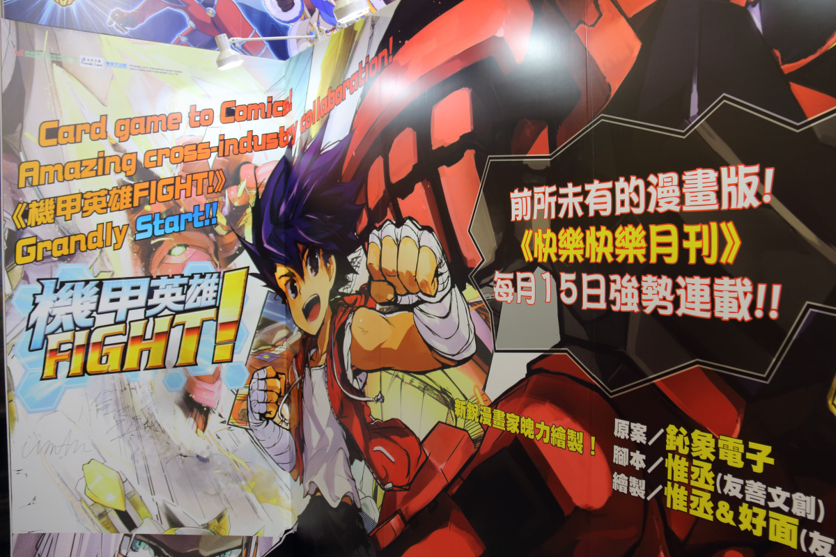 機甲英雄(Hero of Robots)》,這款以機器人為主題的作品不只在遊戲領域發展,還與友善文創旗下新銳漫畫家惟丞&好面合作推出改編漫畫,在青文「快樂快樂」月刊連載,現場還展出紙模型與公仔等周邊。