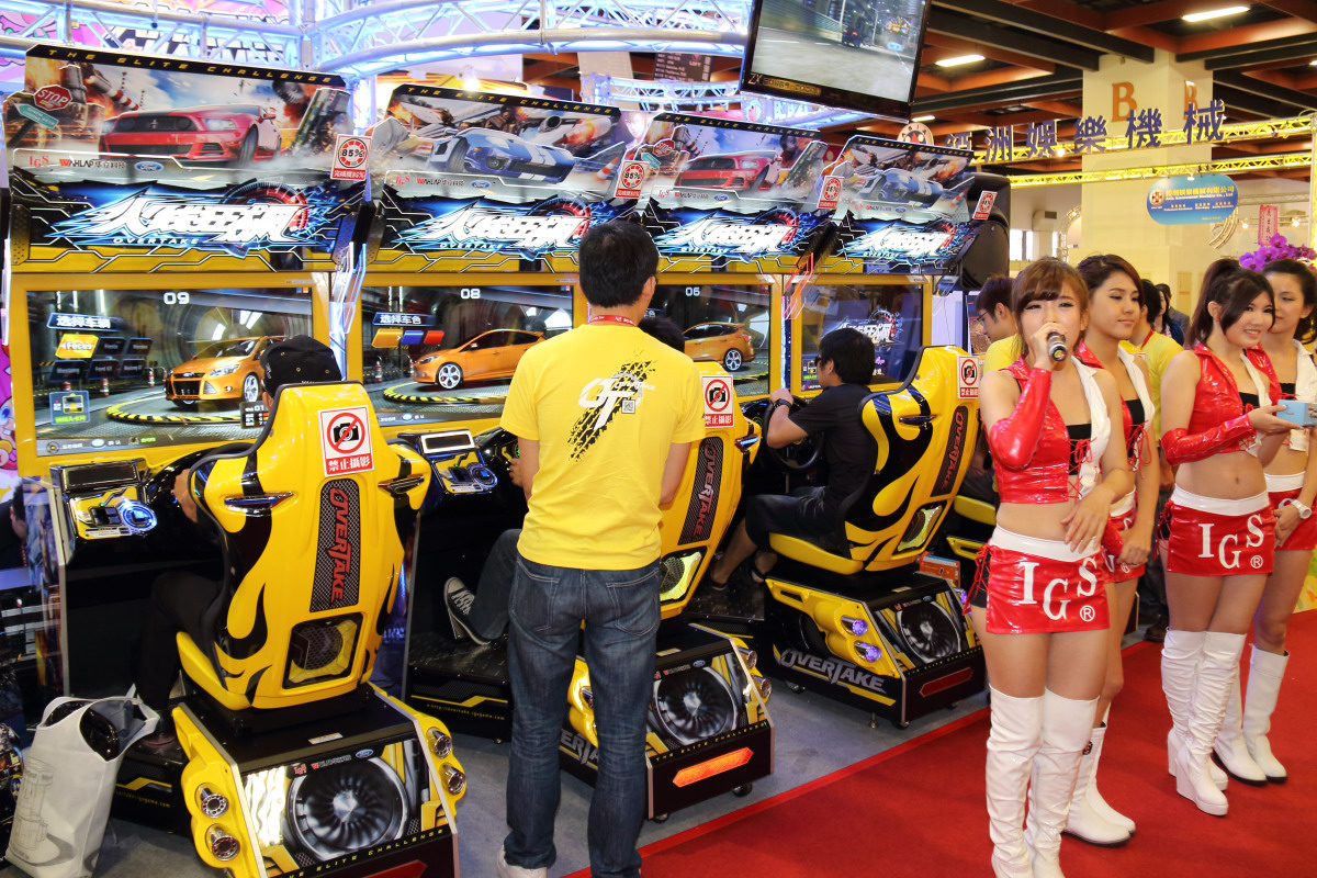 火線狂飆(Over Take)》為首的自製大型電玩遊戲產品,每日還會定時舉行 Show Girl 旗舞與比賽來炒熱人氣。