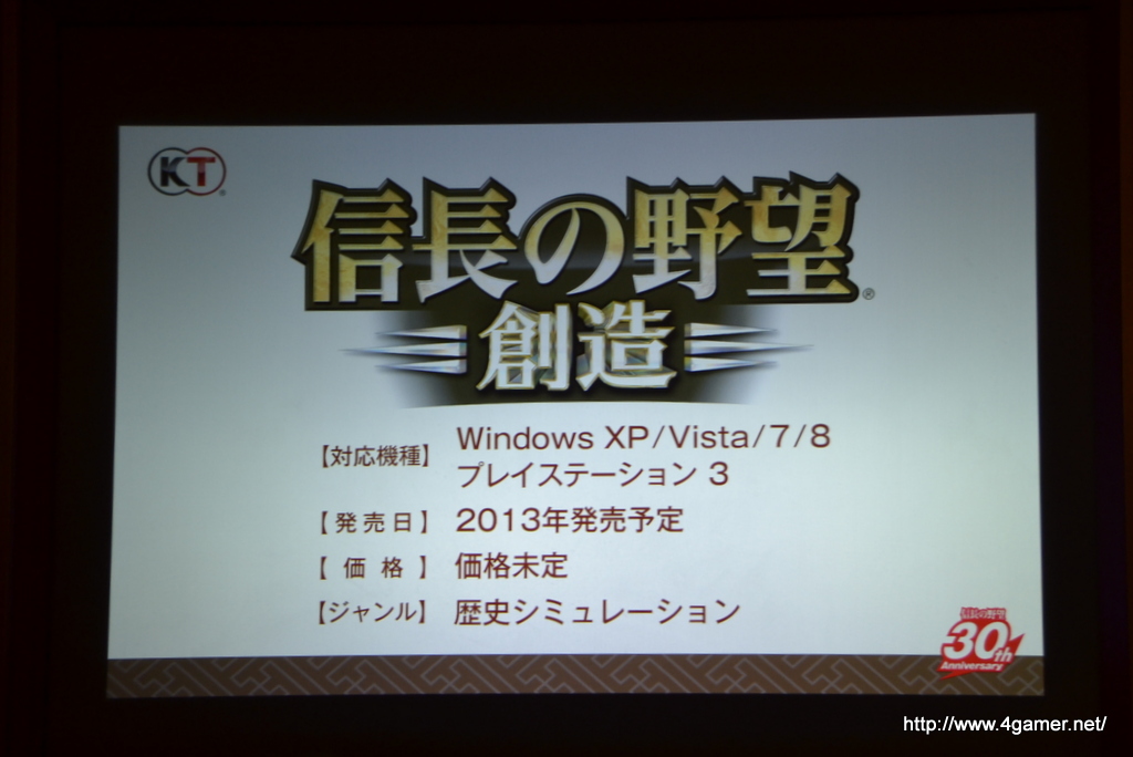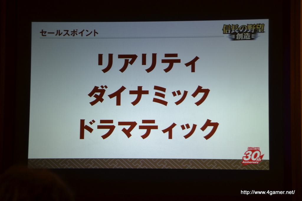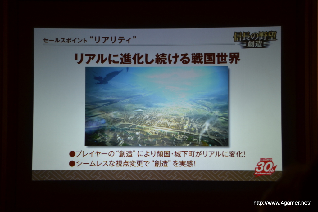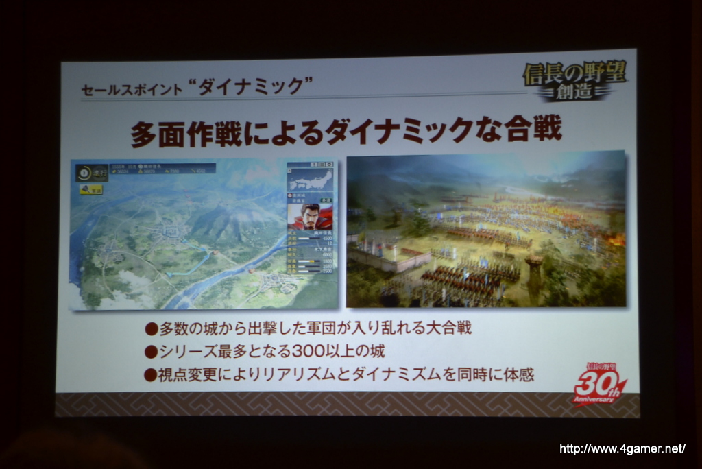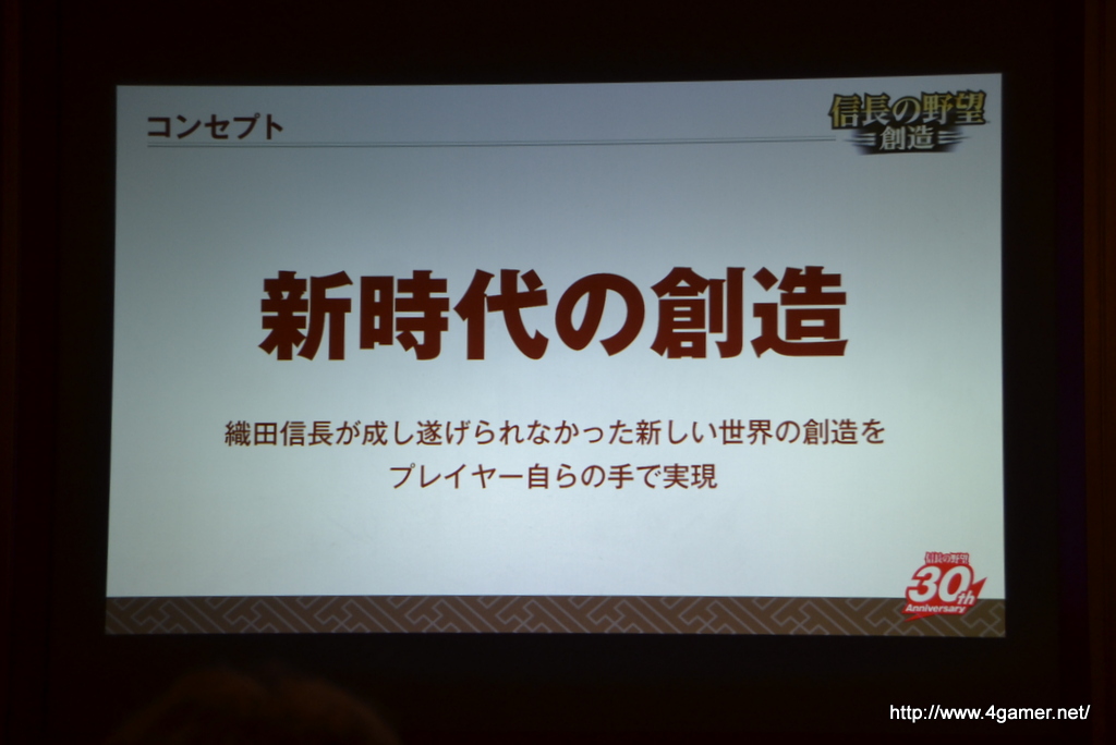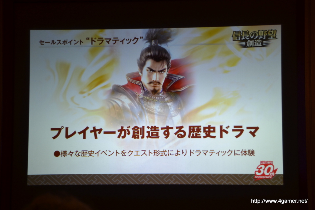 除了在發表會中公開紀念作品,系列最新作《信長之野望・創造》的情報之外,也為其 30 周年業務做了相關說明。