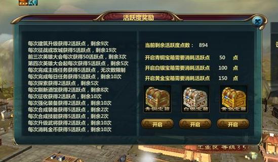 此外,遊戲中還有各種活動,達成條件後可取得其他小獎勵。另外,累積到一定的活躍度累積時,玩家還可以開啟寶箱取得獎勵。