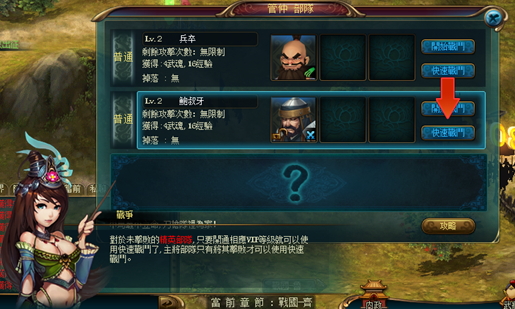 過了引導階段後,快速戰鬥至少要儲值到九品官才能使用