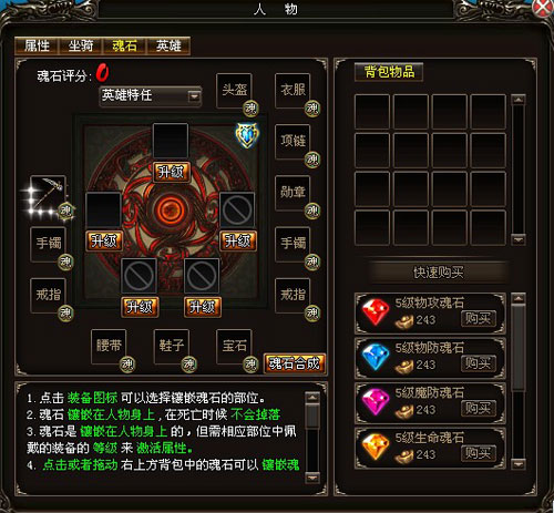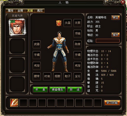 玩家領取英雄後可自由為英雄設置名字,英雄出戰後將與玩家並肩作戰,獲得殺怪經驗,一同成長強大。英雄擁有與玩家角色一樣的裝備系統,並且可與玩家共享藥品與裝備,而英雄所得道具則將放置與英雄專屬背包中。