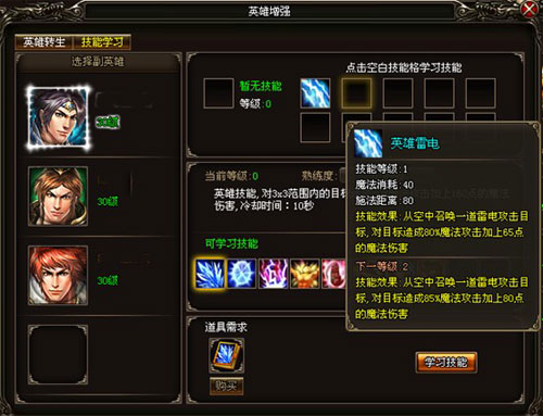 雷電轟殺」,而擅長運用 BUFF 與治癒術的道士英雄則專攻於「英雄治癒術」與「英雄幽靈戰甲」等。