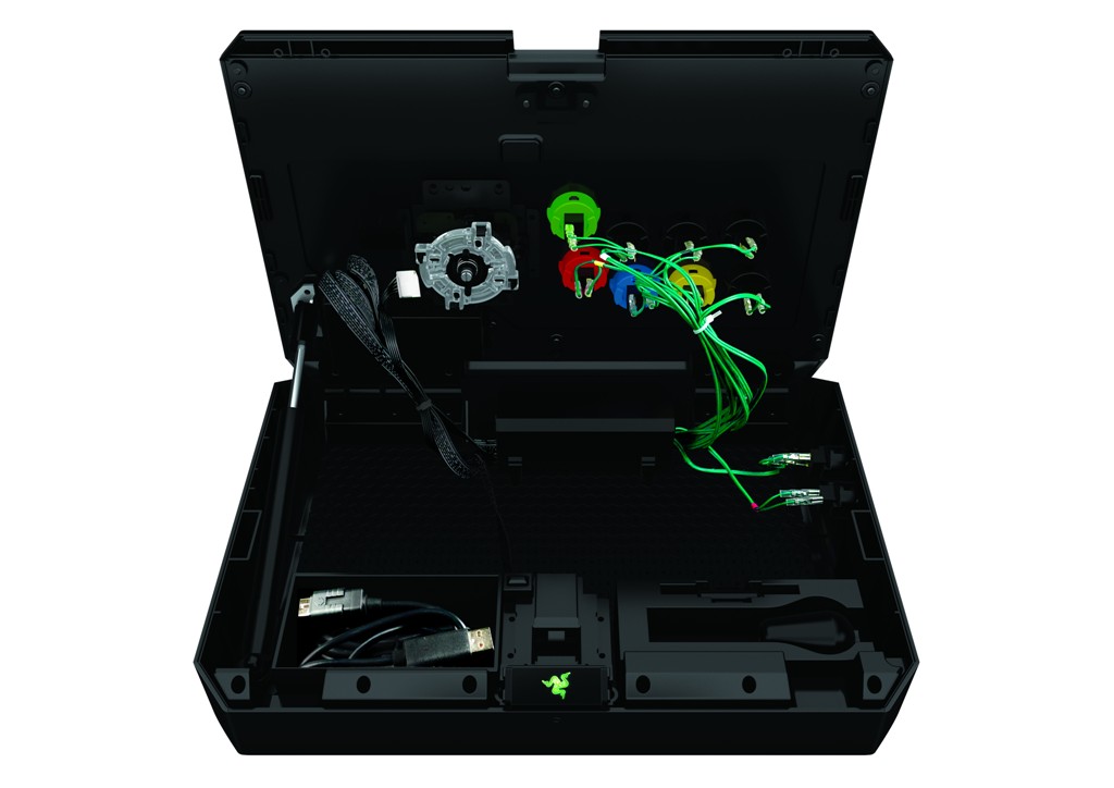 可輕易用的 Razer Atrox 內部空間是專為儲存可替換的棒型搖桿帽、可拆卸式纜線,以及為修改模組使用的專屬螺絲起子,提供玩家們巡迴競賽時充份的儲存空間。