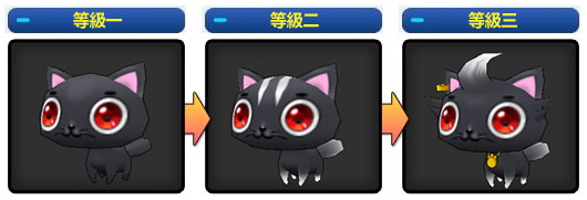 萌翻天的寵物「黑貓」除了讓主人享受飼養的樂趣,寵物所具備特殊技能還可助玩家提升戰力!中看又重用的寵物「黑貓」,一共擁有 3 階段的強化變身,而每一次變身將會重新獲得技能外,外觀也會變得更加帥氣!