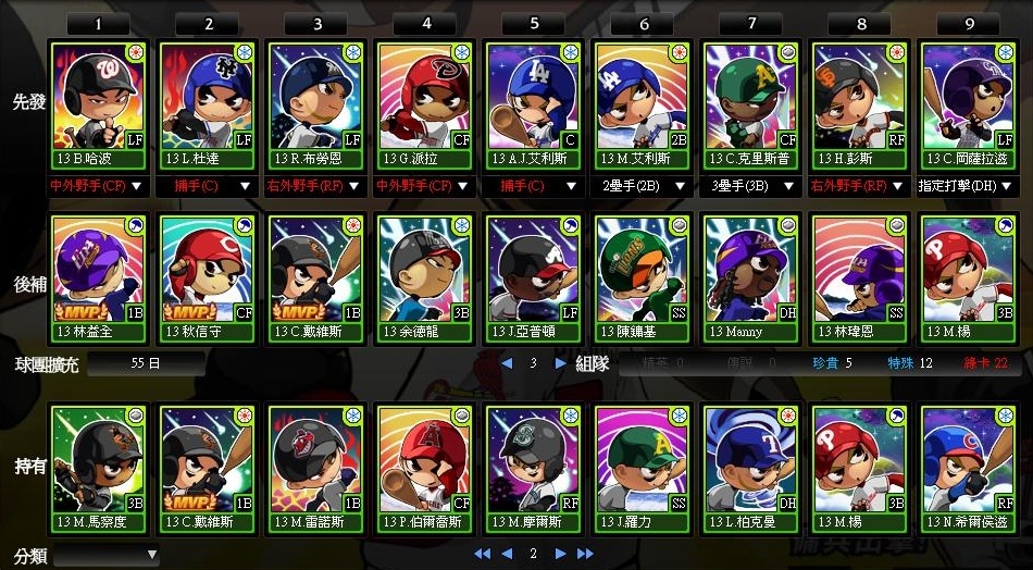 2013 年 WBC 中華健兒在場上的表現,激發起全國人民挺國球的熱血情緒,本次改版特別同步推出中華隊傳說卡「彭政閔」,擔任中華隊隊長的「恰恰」在中澳大戰時,不但以胸膛肉身擋球,更於賽程中以身作則,轟出經典賽首支全壘打,鋼鐵風範、勇領全隊贏得關鍵首勝,國人讚揚不已!「彭政閔」傳說卡數值相當傲人,打擊高達 83、速度也達到 82,若玩家使用【鋼鐵人】潛力值後,將大幅降低天氣影響,克服任何惡劣天候狀況,帶領中華隊邁向勝利!