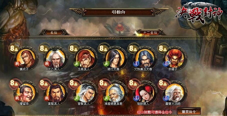 《決戰封神》中,神仙是玩家主要的戰鬥夥伴。神仙分名仙、十二金仙、城池名仙三種,每種類型取得方式不同。官方於今日釋出神仙介紹,以及三種取得途徑。